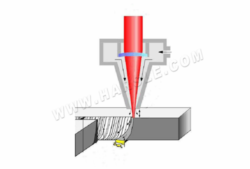 The laser cutting machine is to focus the laser light emitted from the laser into a high-power density laser beam through the optical path system. The laser beam irradiates the surface of the workpiece to make the workpiece reach the melting point or boiling point. At the same time, the high-pressure gas coaxial with the beam blows away the molten or vaporized metal.